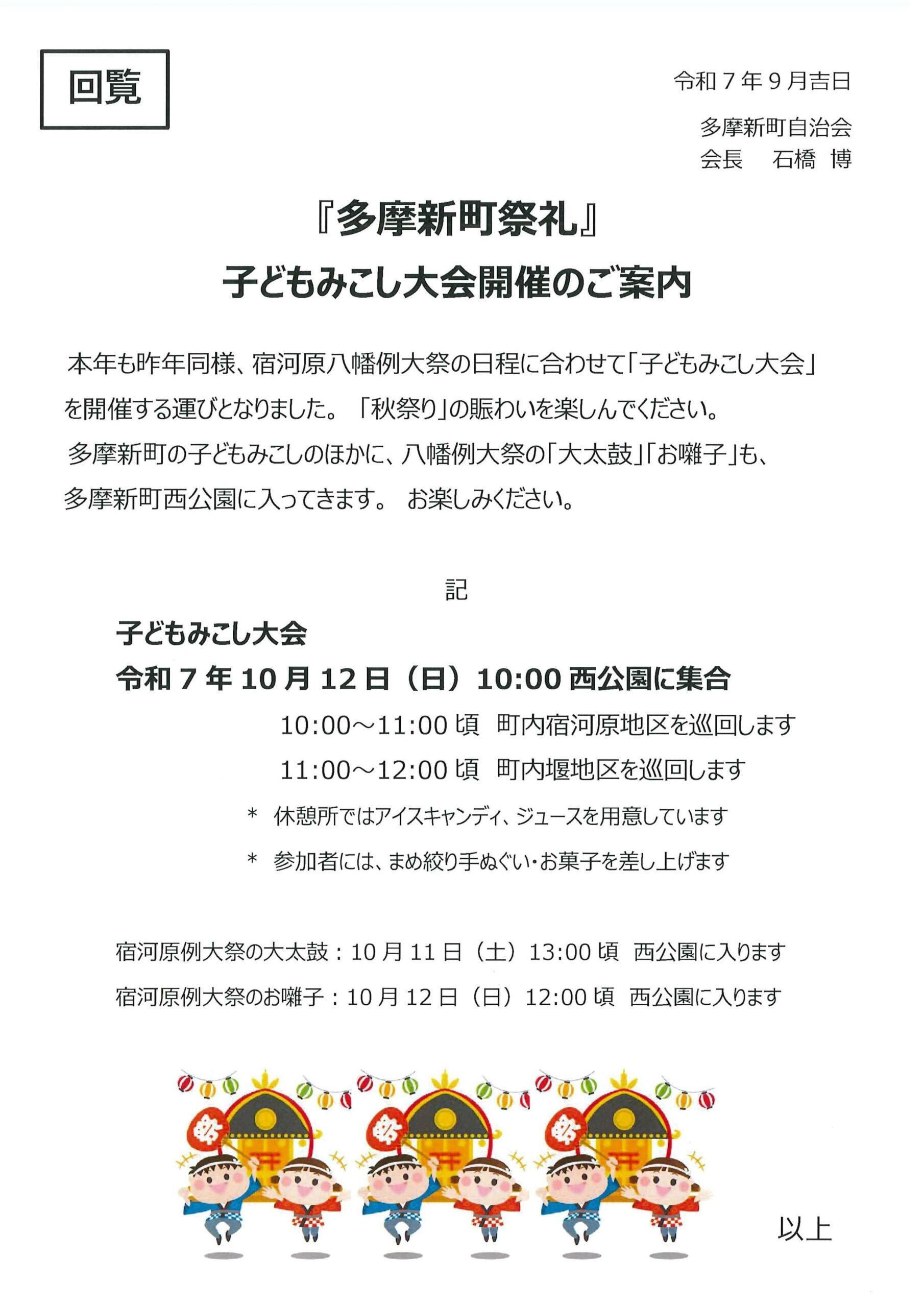 『多摩新町祭礼』子どもみこし大会開催のご案内